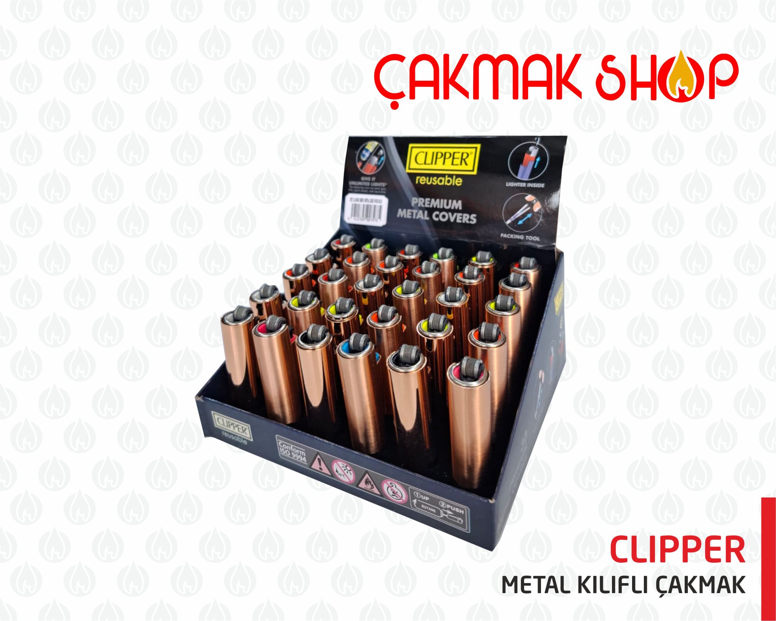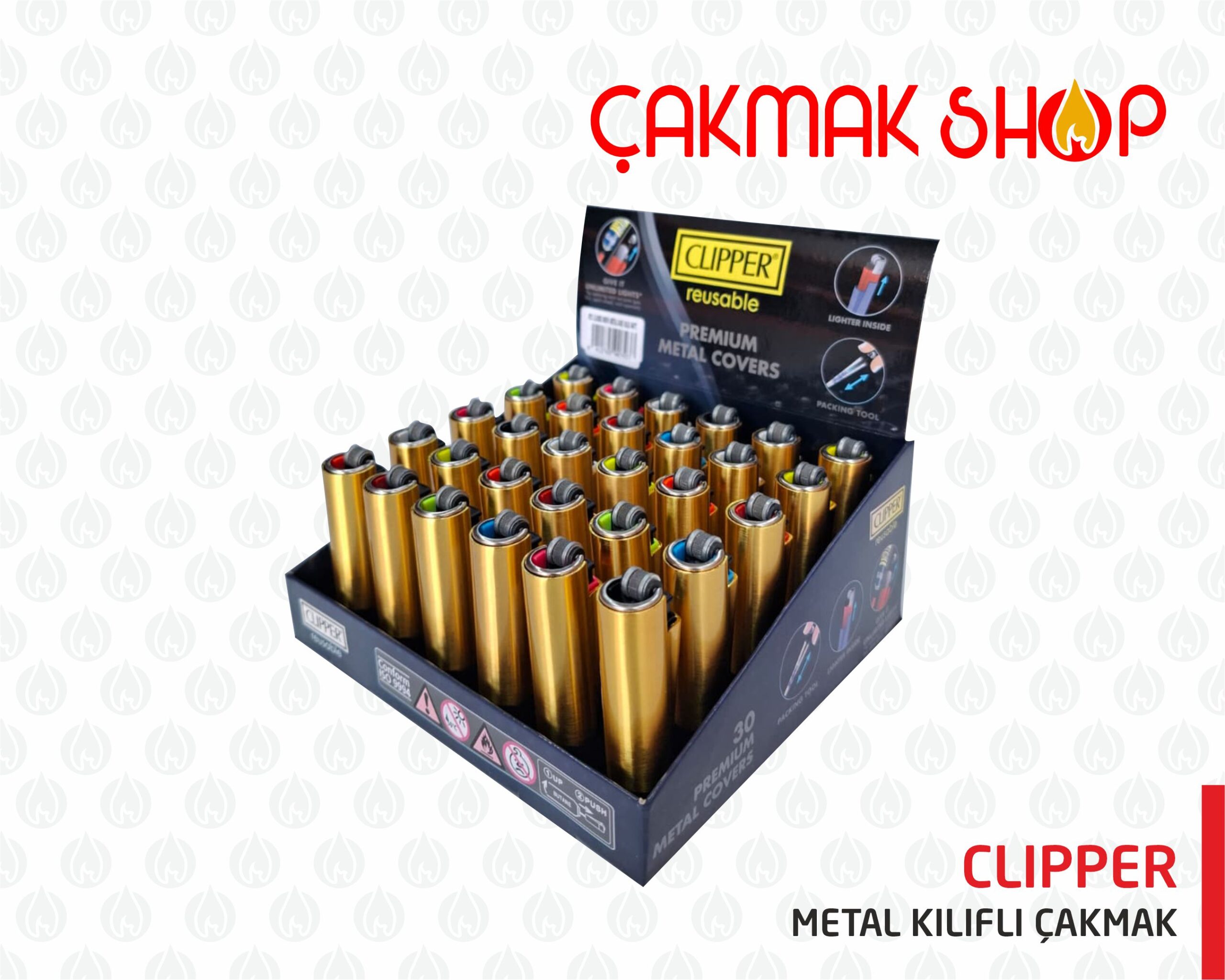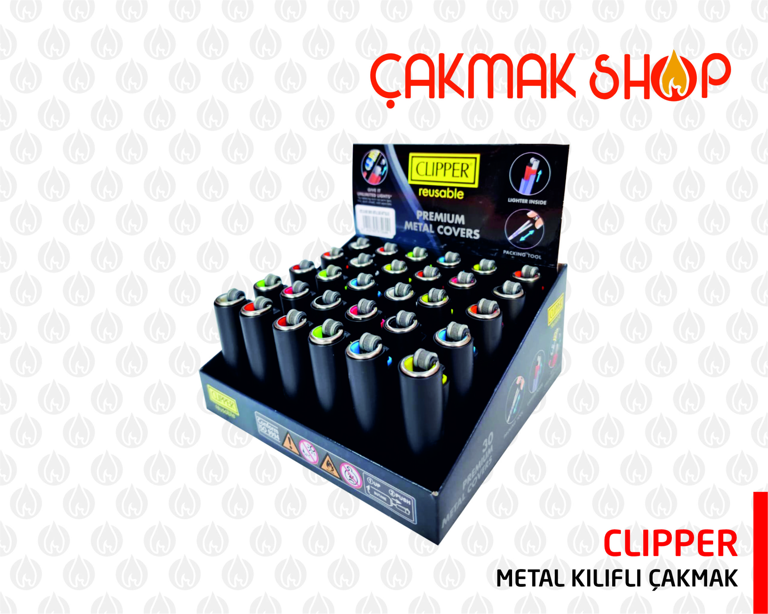 >1 Pakette 30 adet Clipper metal çakmak vardır.